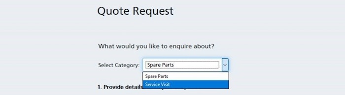 You will now be taken to the Quote Request page. Please select “Service Visit” under the Select Category dropdown list.